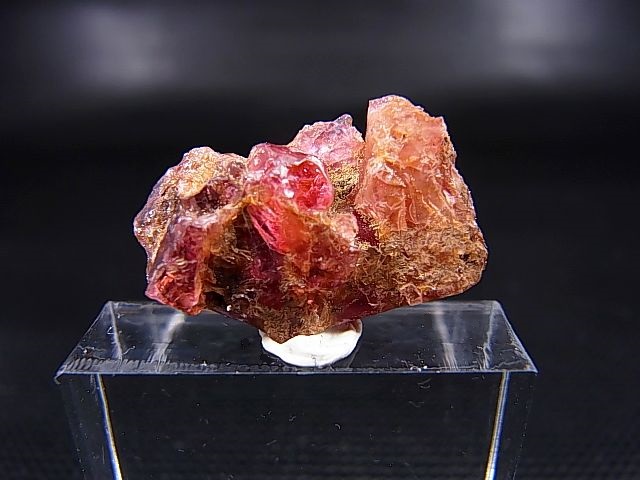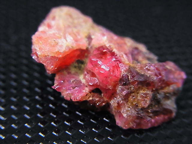 本品は大きなスピネル結晶の中に飛び出したホットピンク色の結晶が見えます。