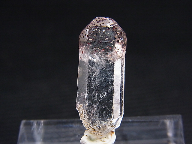 本品は小さなサイズの板状結晶で、上部にレピドクロサイト(鱗鉄鉱)が水の中に浮かぶように入ってます。