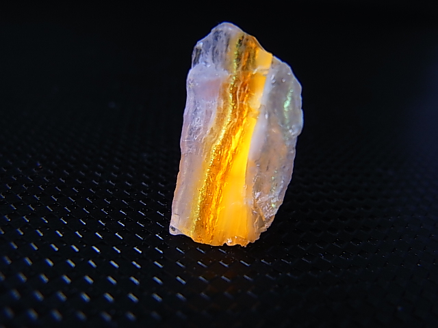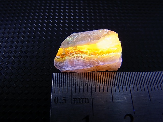 コモンオパールに属し、蛍光の原因は金・銀・鉄やアンチモンなどのレアメタル(希土類鉱物)と言われています。