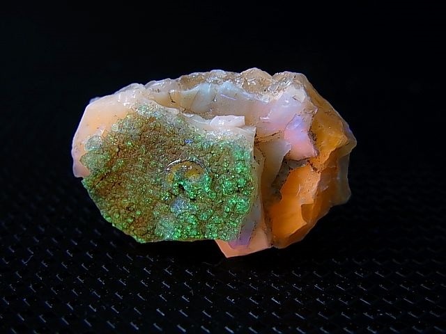 コモンオパールに属し、蛍光の原因は金・銀・鉄やアンチモンなどのレアメタル(希土類鉱物)と言われています。