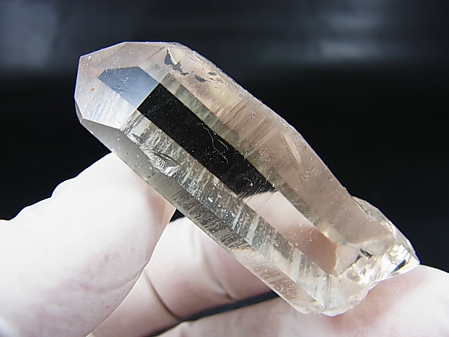 コレクターには有名なノルウェー産のアナテース(鋭錐石)結晶が見える水晶です。