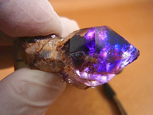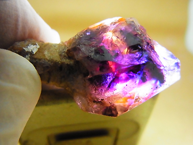 光を透過すると内部に綺麗な青やマゼンタピンク、紫色のグラデーションや