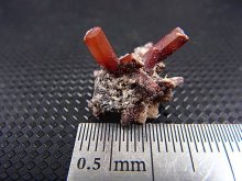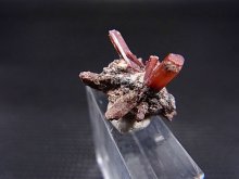 母岩から成長した、このメキシコ産のトパーズ結晶は赤い色をしています。