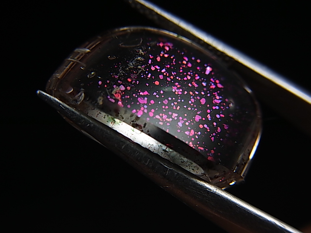 ○レピドクロサイト(鱗鉄鉱)やヘマタイト(赤鉄鉱)の内包によるとされるもの(最も有力な説)