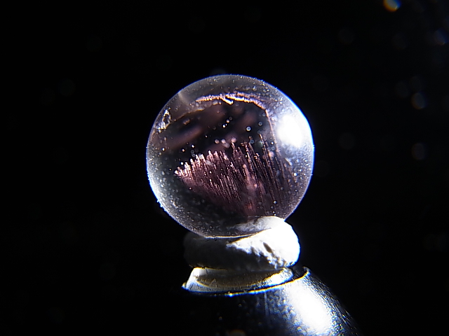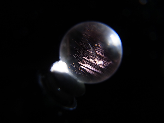 水晶(丸玉加工)の内部に非常に希なティンダルエフェクト(チンダル効果)現象の