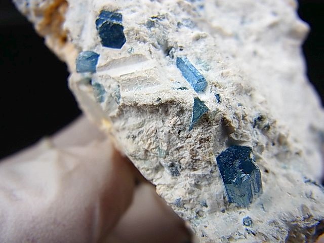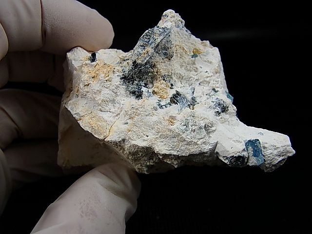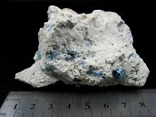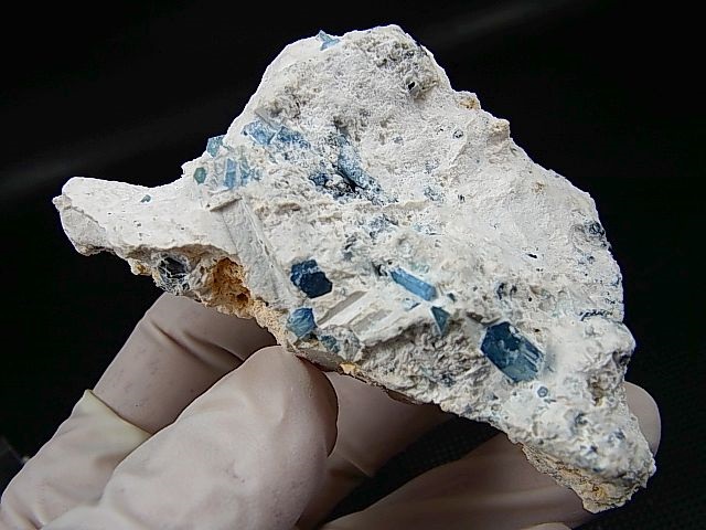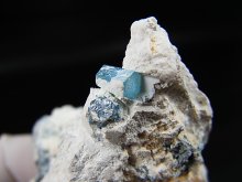 本品は産状が粘土鉱物のカオリナイトに埋まったアクアマリン柱状結晶です。