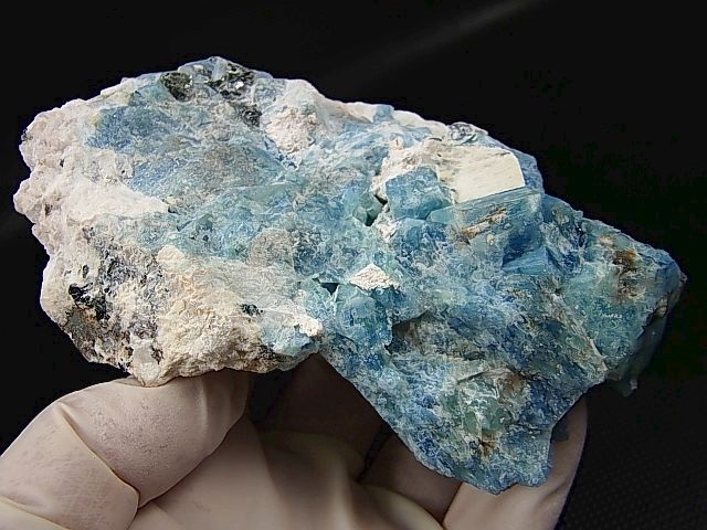 本品は太いアクアマリン結晶が固まって塊(マッシブ)状になった珍しい個体です。