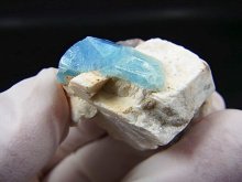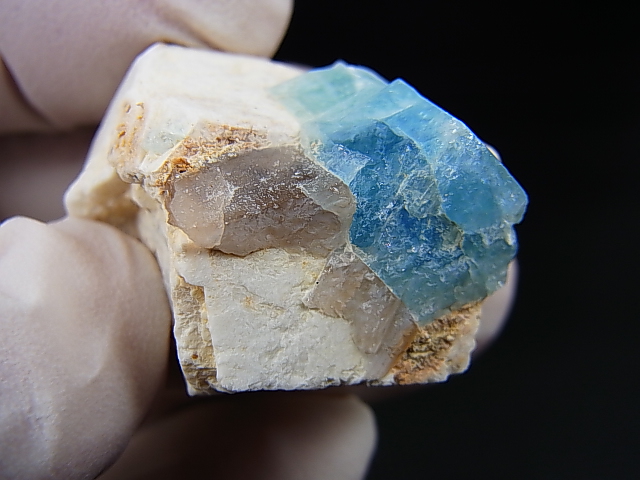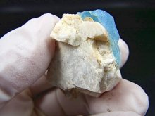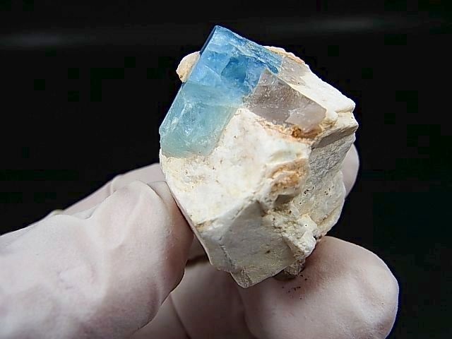 本品は美しい透明感のあるブルーの太い柱状結晶のアクアマリンと微斜長石(マイクロクリン)が共生しています。