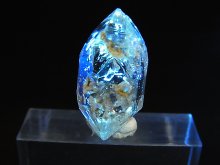 閉じ込められ、紫外線ランプを当てると結晶の中で蛍光します。