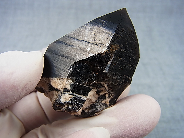 ノルウェー・オスロの南西部Skjerpで産出した珍しいモリオン(黒水晶)です。