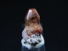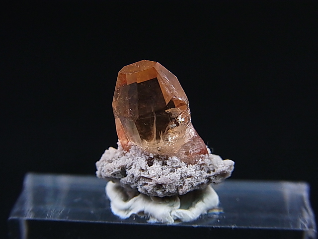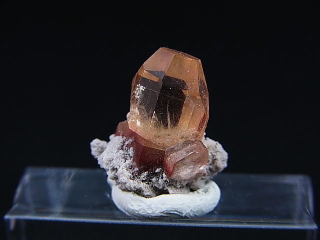 母岩から成長した、このメキシコ産のトパーズ結晶は赤い色をしています。