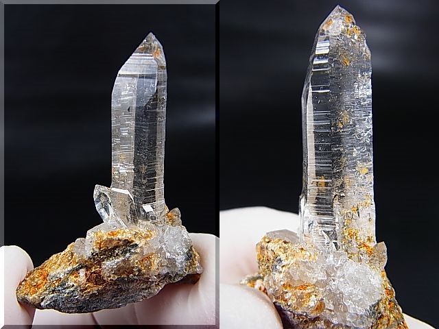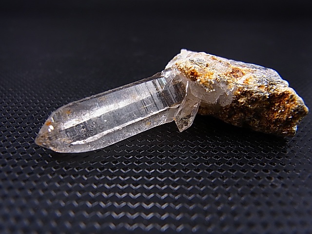 本品はヘマタイトやリモナイトが付着しながら透明度がありマイカの付着で照りの良い美しい水晶ポイントです。