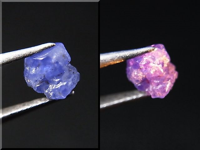 紫外線ランプで蛍光し白熱灯でやや紫にカラーチェンジします。
