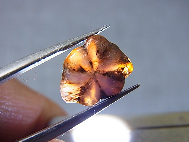 原石に六条の放射線状の線が見え、さらに中心が丸くなっているトラピチェの形です。