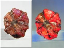 非加熱未処理で紫外線ランプで赤く蛍光します。