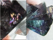 フローライトの結晶は大きく、光を透過させると濃淡のブルーやグリーンの透過色が見えます。
