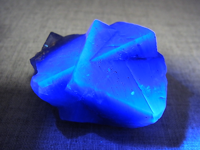 また、太陽光によっても長波紫外線ランプでも強く蛍光します。