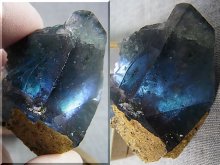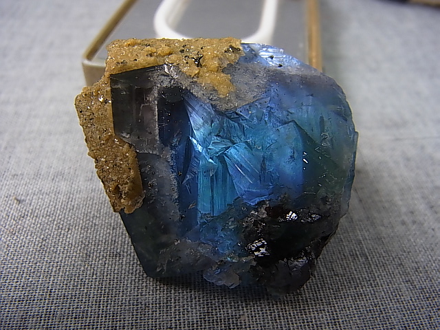 フローライトの結晶は大きく、光を透過させると濃淡のブルーやグリーンの透過色が見えます。