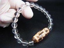 ホーム | ☆パーフェクトストーン・ジュエリーライン > ジュエリーブレスレット「九眼」(右下がり/ドラゴンライン入り)現代天珠/K2カラコルム・クリアクオーツ/オリジナルブレスレット 内寸:約17cm
