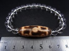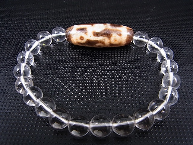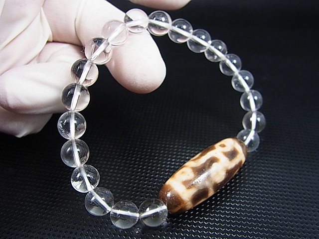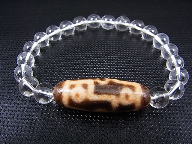 「九眼」(右下がり/ドラゴンライン入り)現代天珠/K2カラコルム・クリアクオーツ/オリジナルブレスレット 内寸:約17cm[PR4767]