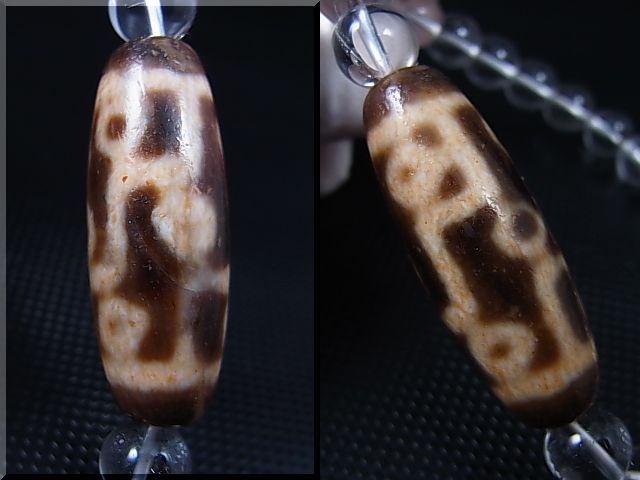 さらに九眼や六眼天珠に、非常に希に見られる右下がり(左上がり)の模様です。
