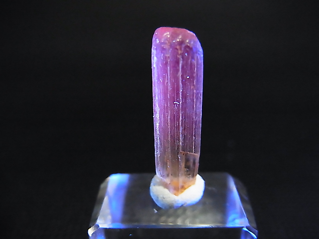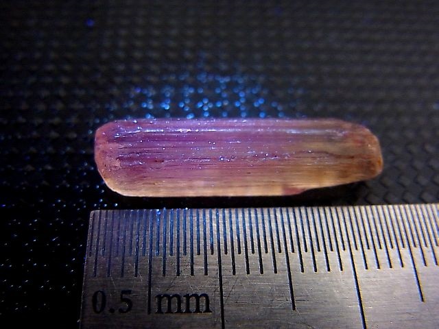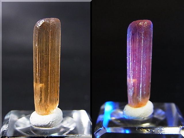長波紫外線ランプを当てると美しいピンク色に蛍光します。