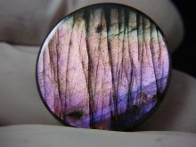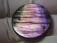 珍しいパープルやピンク色のシラー(ラブラドライトレッセンス)が見えるラブラドライト研磨原石です。