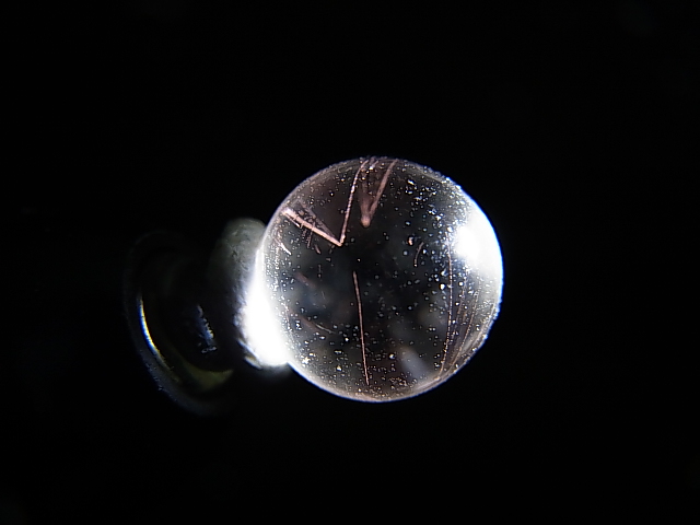 水晶(丸玉加工)の内部に非常に希なティンダルエフェクト(チンダル効果)現象の