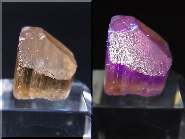 長波紫外線ランプを当てると美しいピンク色に蛍光します。