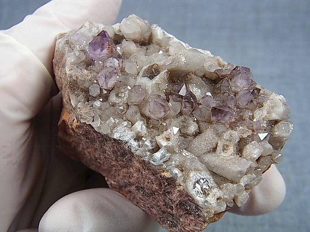 現地コレクターによって採取されたアメジストと水晶の群晶サンプルです。