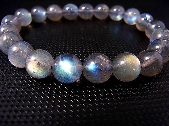 マダガスカル産ラブラドライト(オレンジピンク/ブルーシラー)ブレスレット 9mm平均 内寸:約16cm