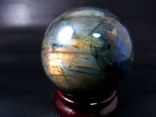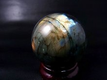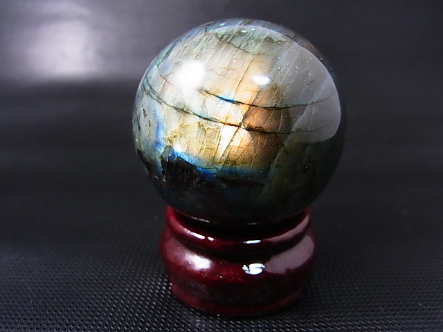 ブルーやイエロー、オレンジのシラーが綺麗に見えるラブラドライトの丸玉です。