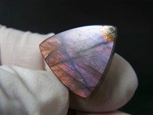 珍しいパープルやオレンジピンク色のシラー(ラブラドライトレッセンス)が見えるラブラドライト研磨原石です。