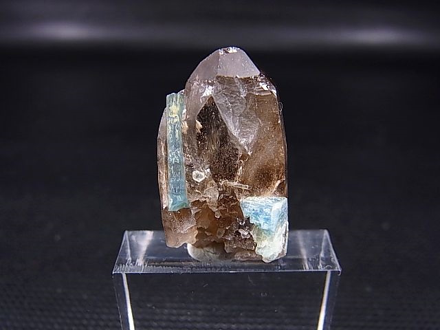本品はスモーキー水晶にトップクラスのアクアマリン結晶が共生したものです。