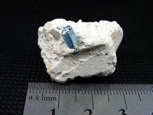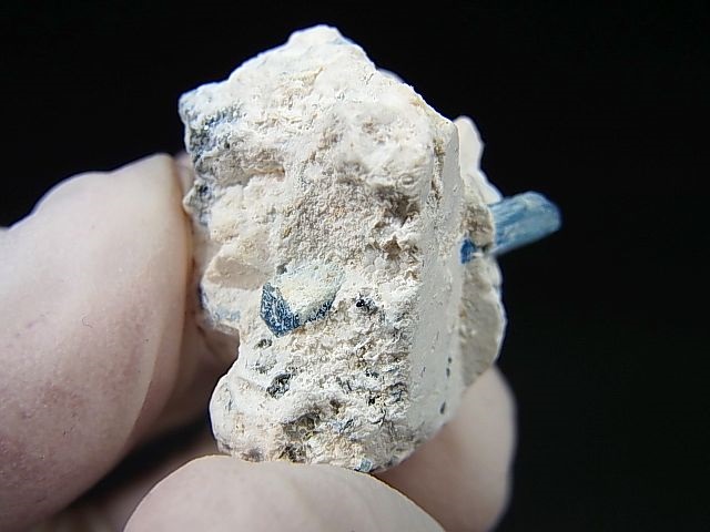 本品は産状が粘土鉱物のカオリナイトに埋まったアクアマリン柱状結晶です。