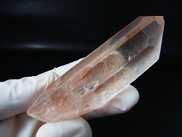 リチウムや鉄分による影響で全体が美しいピンク色に見えるとてもレアな水晶です。