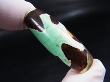 ヴィンテージ:「雪域天珠:老緑色金銭鉤」西蔵(チベット)天珠 直径約13.5×37.5mm[PR4871]