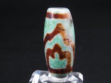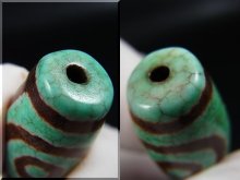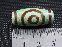 ホーム | ■超特価!各種ビーズ1粒売り■ > 天珠ヴィンテージ:「雪域天珠:老緑色一眼山水」西蔵(チベット)天珠 直径約13×29mm