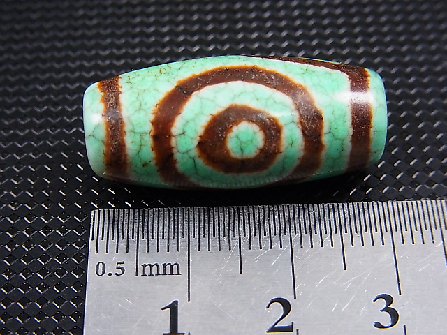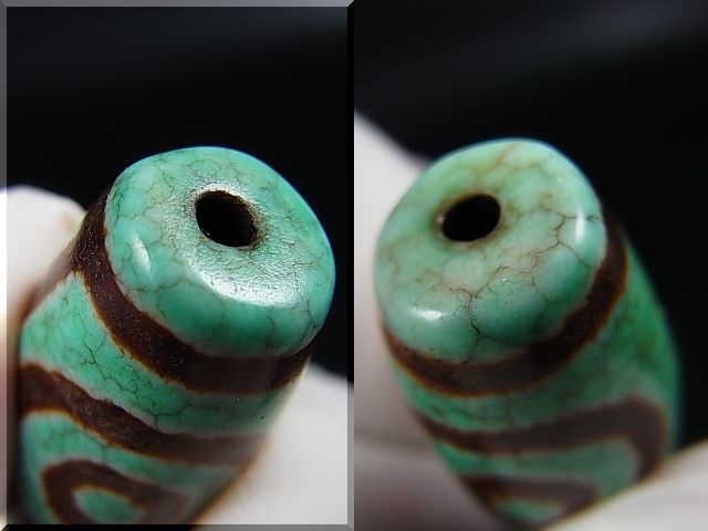 ヴィンテージ:「雪域天珠:老緑色一眼山水」西蔵(チベット)天珠 直径約13×29mm[PR4872]