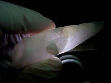 暗所で光を透過すると淡く美しい紫色が浮かび上がります。