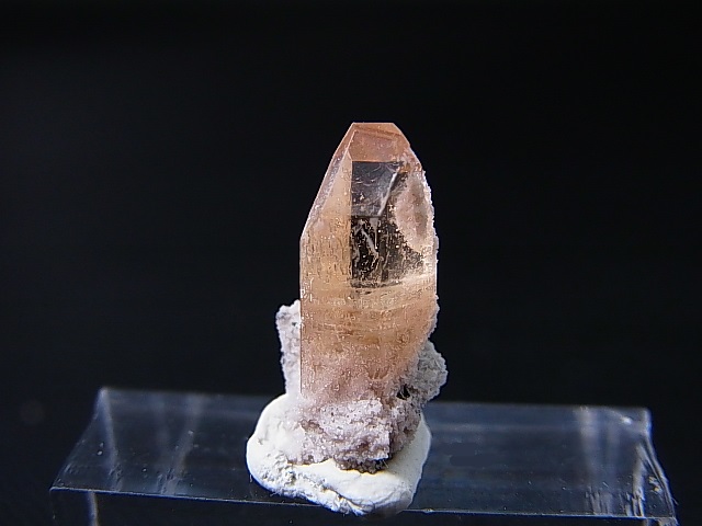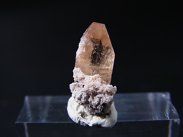 母岩から成長した、このメキシコ産のトパーズ結晶は赤い色をしています。