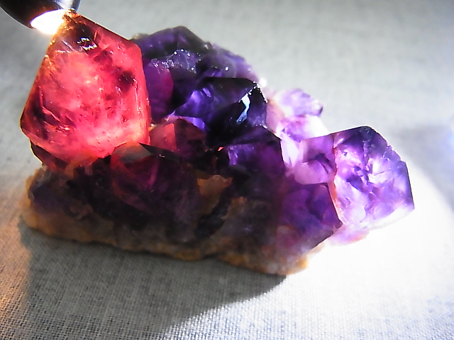濃い紫色と白熱灯によるカラーシフト(紫→赤)が特徴的なサンプルです。