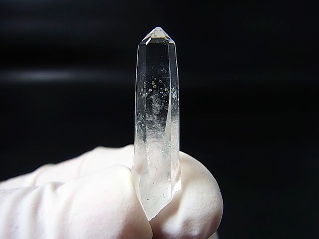 ホーム | 水晶クラスター&ポイント > 国産(日本)水晶山梨県乙女鉱山産ウォータークリア水晶ポイント(角閃石/パイライト入り) 2.1g