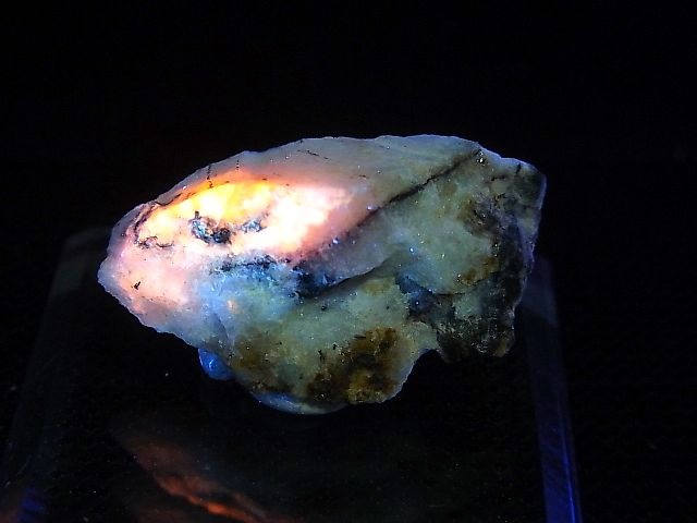 日光や紫外線ライトでハックマナイトのようにオレンジの美しい蛍光をする石です。