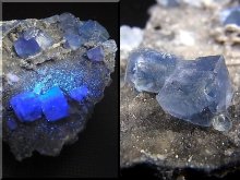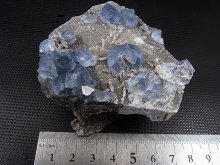 透明なブルーグリーンのキューブ状フローライトがいくつも母岩の上にあります。