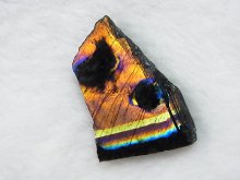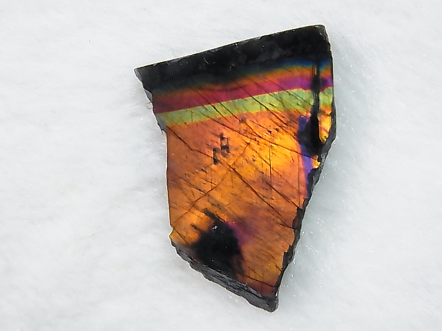 光の干渉効果によって見える様々な色模様(スペクトル=虹色)はフィンランドだけで産出される種類です。