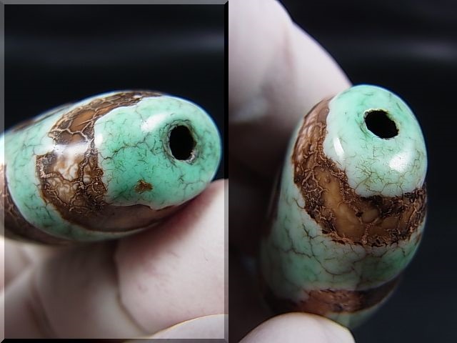 瑪瑙に碧色と図柄を焼き付けした現代天珠には無いアイテムです。