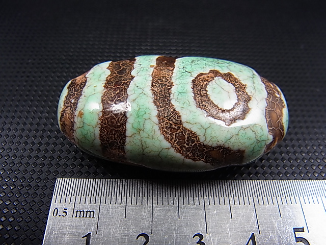 ヴィンテージ:「雪域天珠:老緑色二眼」西蔵(チベット)天珠 約47×27.5×17mm[PR5019]