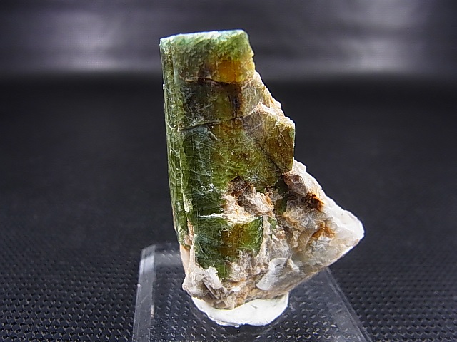本品は深い緑色の大きな柱状結晶です。