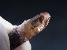 母岩から成長した、このメキシコ産のトパーズ結晶は赤い色をしています。